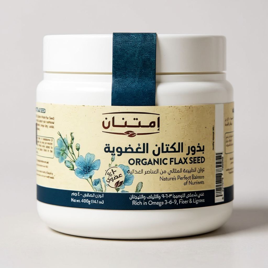 1️⃣ بذر كتان امتنان 100% طبيعي: يحتوي على بذور كتان عضوية نقية 100%، وهي مصدر غني بالألياف والأحماض الدهنية الأساسية أوميغا 3.