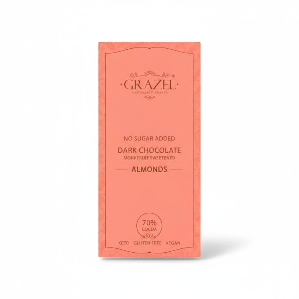 استمتع بتجربة فريدة من الشوكولاتة الفاخرة مع شيكولاتة جرازل الخالية من السكر، المصنوعة من أجود أنواع الكاكاو والمحلاة بمُحلي مونك فروت الطبيعي، مما يجعلها الخيار المثالي لعشاق الشوكولاتة الذين يبحثون عن بديل صحي بدون إضافة سكر مكرر.