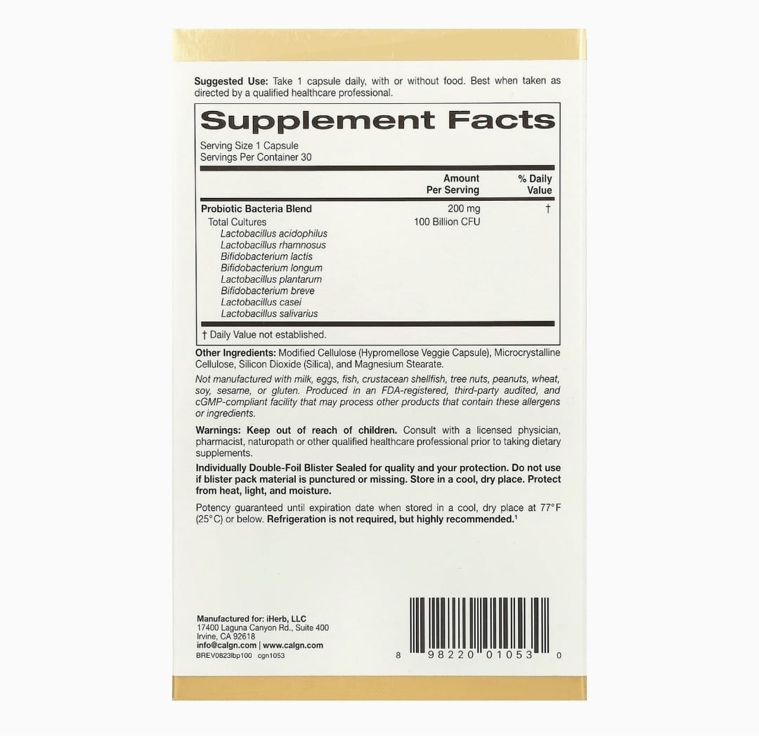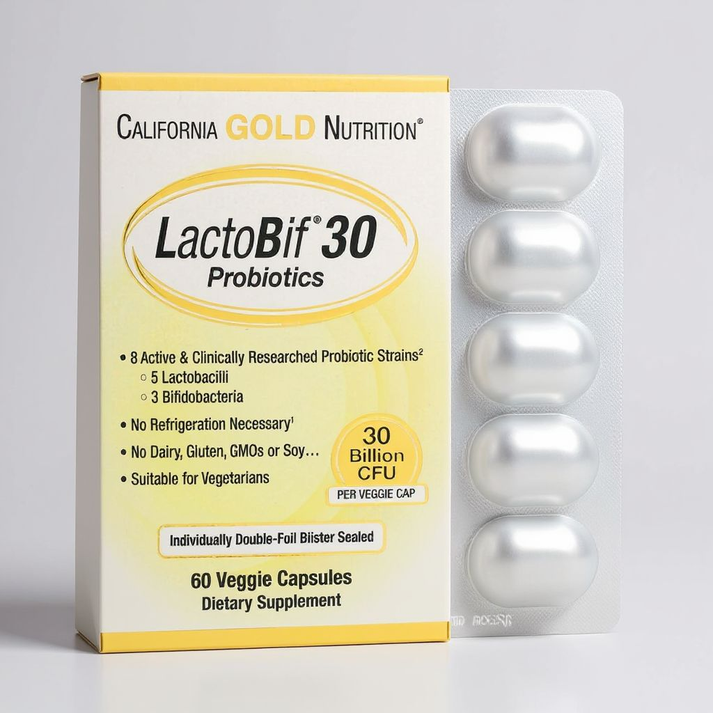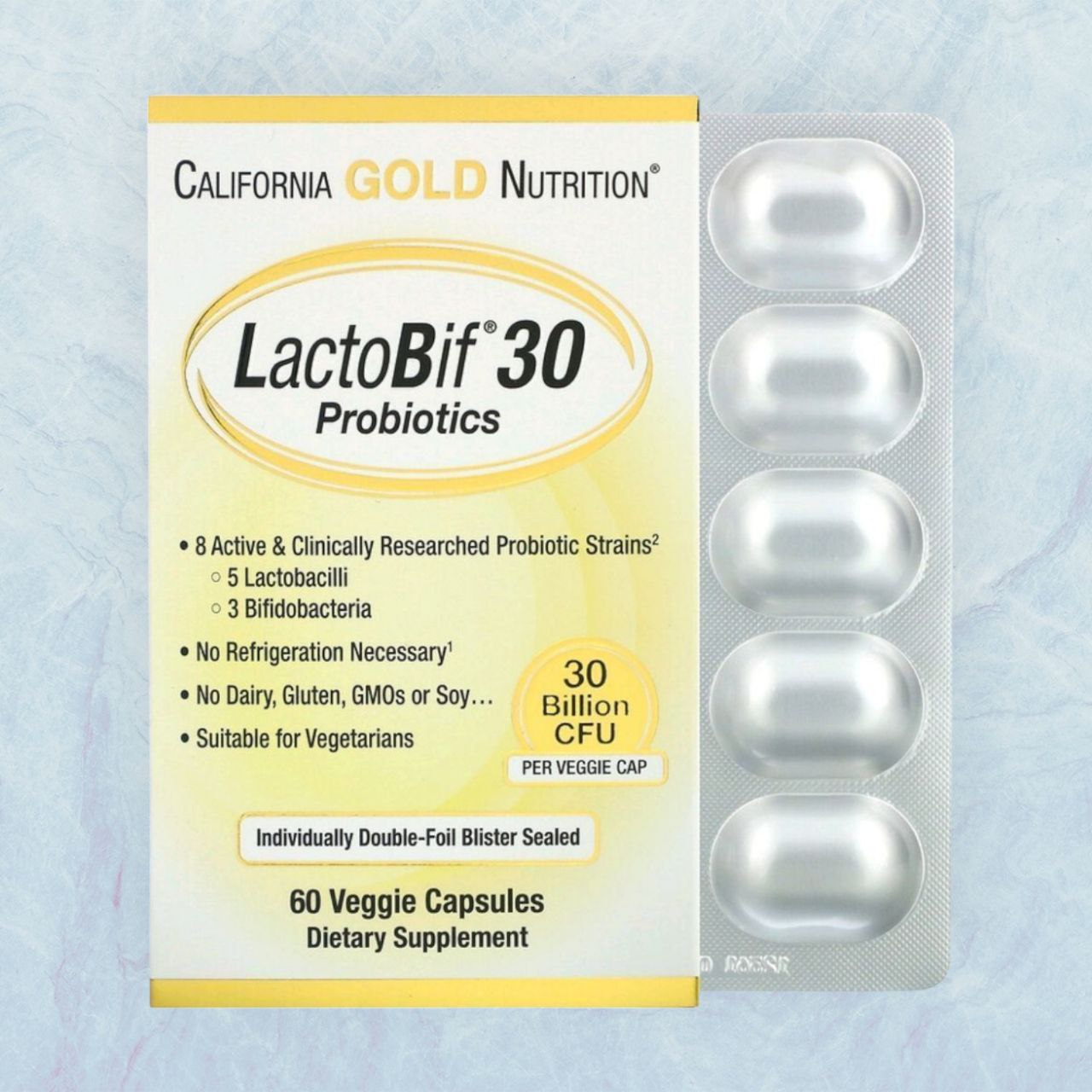 كاليفورنيا غولد نيوتريشن, بروبيوتيك LactoBif 30، 30 مليار وحدة تشكيل مستعمرة، 60 كبسولة نباتية