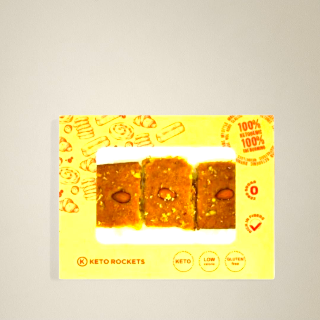 استمتع بمذاق البسبوسة الشرقية الأصيلة مع بسبوسة كيتو من كيتو روكيتس! هذه الحلوى اللذيذة مصنوعة خصيصًا لمن يتبعون نظام الكيتو دايت أو أي نظام غذائي منخفض الكربوهيدرات وقليل السكر. الآن يمكنك تناول البسبوسة دون الشعور بالذنب، فهي لا تؤثر على مستويات السكر في الدم وتناسب مرضى السكري وأصحاب الأنظمة الصحية.