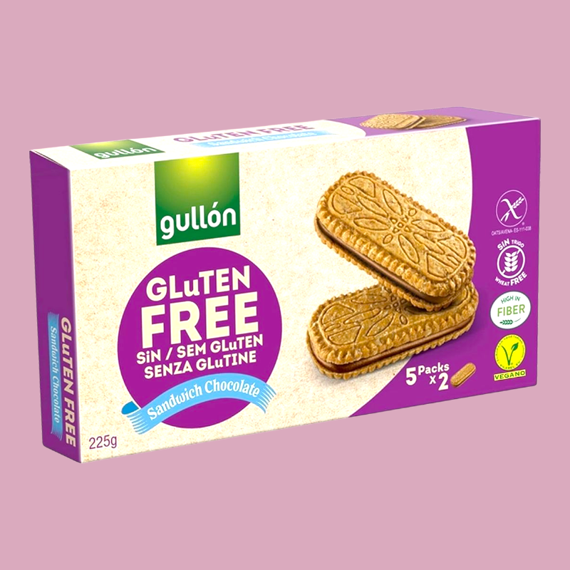🟣 Gullón Gluten Free Sandwich Chocolate – بسكويت خالي من الجلوتين بحشوة الشوكولاتة