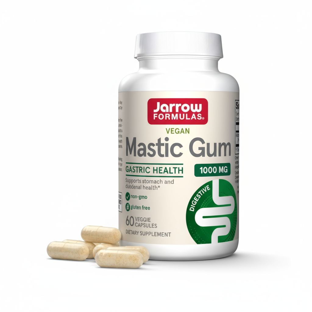 تُقدم جارو فورميلاز مكملًا غذائيًا مميزًا يحتوي على علكة المستكة بتركيز 1000 ملجم لكل حصة يومية، مع 60 كبسولة نباتية (500 ملجم لكل كبسولة)، لدعم صحة الجهاز الهضمي والمعدة.
