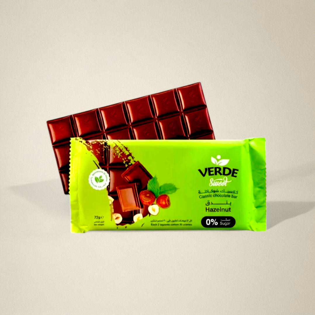 شوكولاتة بار بالبندق كلاسيك من فيردي هي مزيج مثالي يجمع بين طعم الشوكولاتة الغني والفريد ونكهة البندق الكلاسيكية اللذيذة. مصنوعة بعناية من مكونات طبيعية عالية الجودة، لتقدم لك تجربة فاخرة تُرضي ذوقك. يتم تحلية هذه الشوكولاتة باستخدام ستيفيا كبديل طبيعي للسكر، مما يجعلها خيارًا صحيًا لعشاق الشوكولاتة.