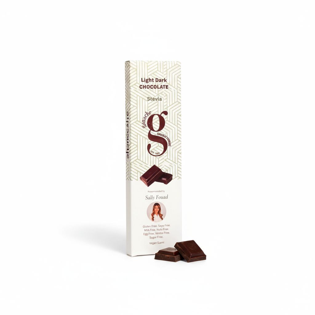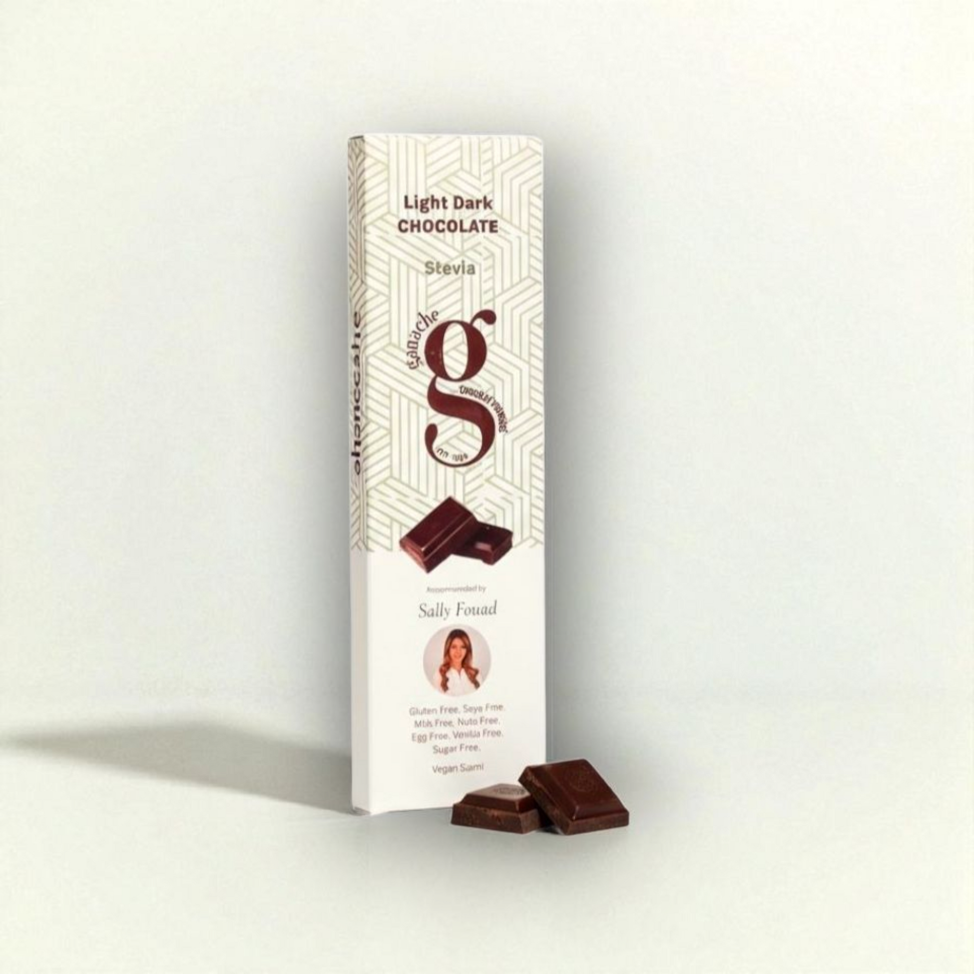 استمتع بتجربة فريدة من الشوكولاتة الداكنة الصحية مع شيكولاتة لايت دارك من جناش وسالى فؤاد، المصنوعة خصيصًا لتناسب جميع الأنظمة الغذائية والخالية تمامًا من الجلوتين، الألبان، الصويا، المكسرات، البيض، الفانيليا، والسكر. محلاة بسكر ستيفيا الطبيعي، مما يجعلها خيارًا مثاليًا لمن يبحثون عن بديل صحي بدون أي مكونات تسبب الحساسية.