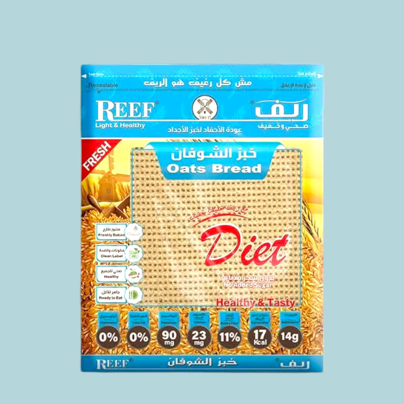 عيش ريف بالشوفان هو خبز صحي مغذي مصنوع من دقيق القمح الكامل و دقيق الشوفان و نخالة القمح. يتميز هذا الخبز بمحتواه الغني بالألياف مما يجعله خيارًا مثاليًا لمن يتبعون أنظمة غذائية صحية ويهتمون بالحفاظ على وزنهم وتغذيتهم بشكل متوازن. خالي من السكر و الدهون، وهو لطيف على الجهاز الهضمي ومناسب للعديد من الأنظمة الغذائية.
