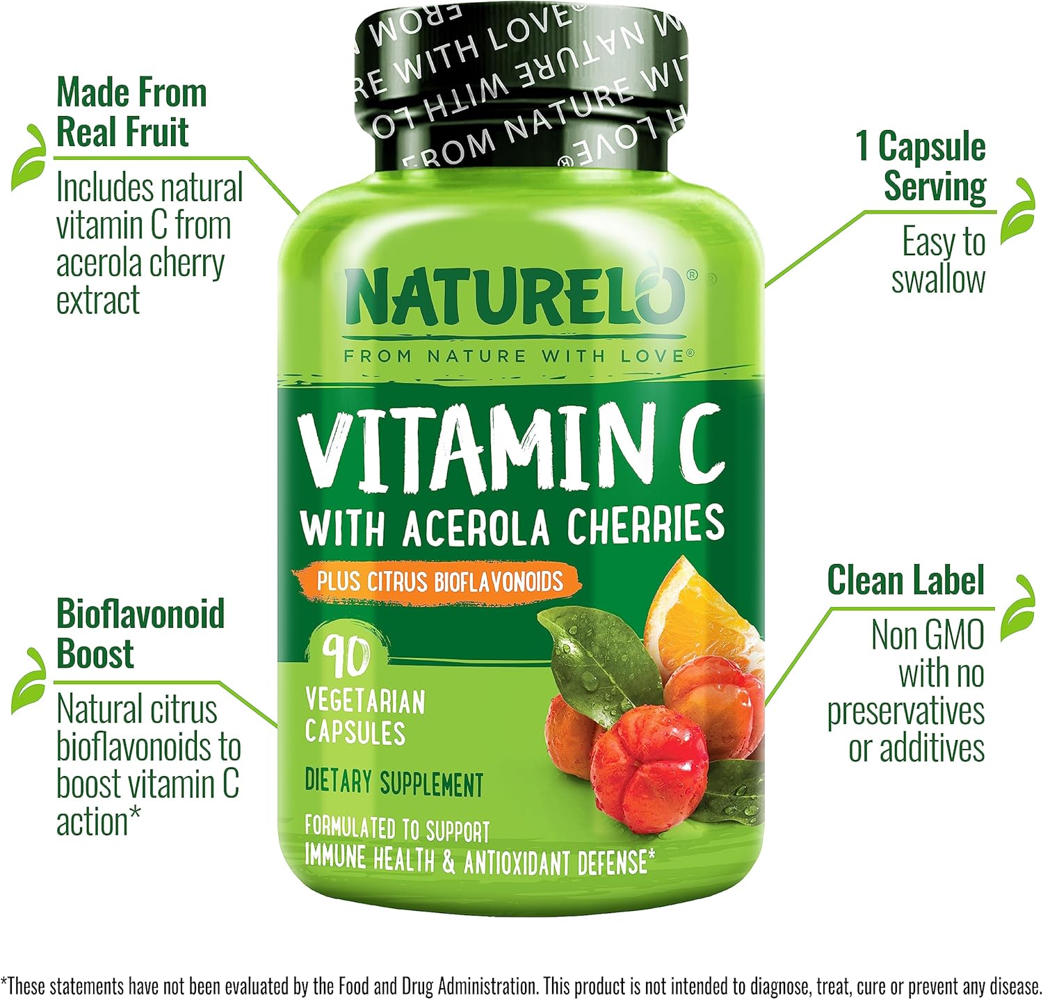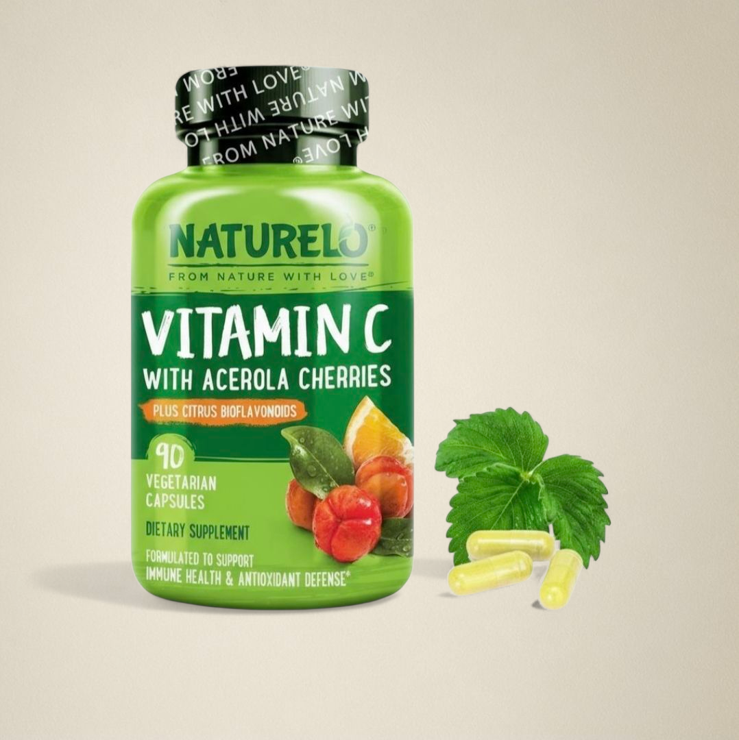 ناتوريلو, فيتامين ج مع الكرز الهندي بالإضافة إلى فلافونويدات حيوية حمضية، 90 كبسولة نباتية