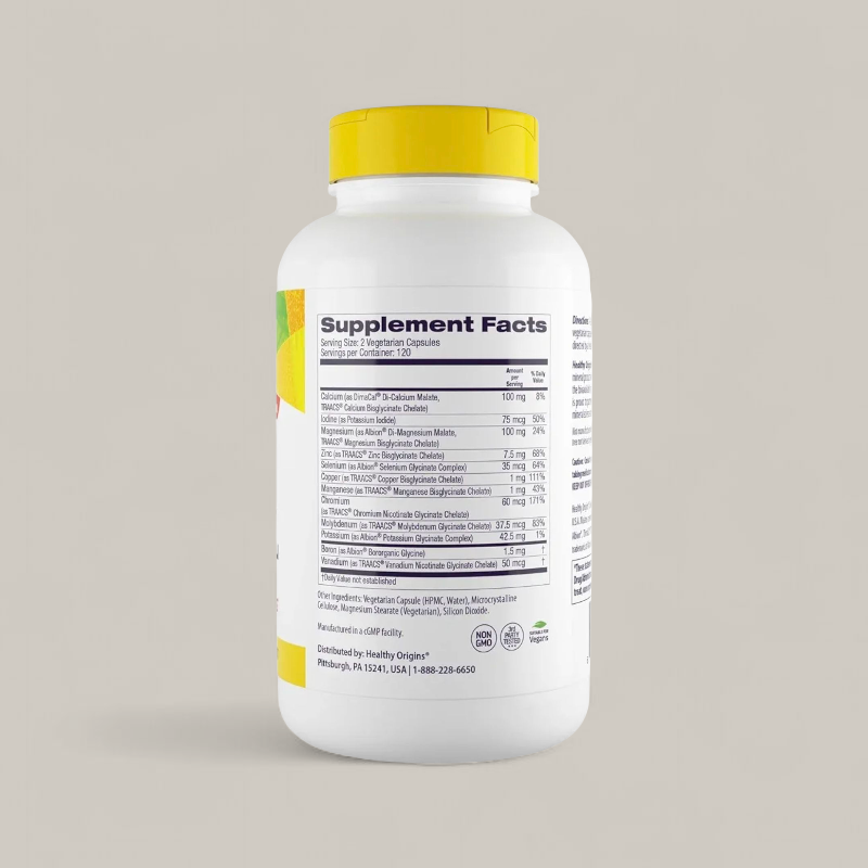 امنح جسمك توازنه المثالي مع Chelated Multi Mineral من Healthy Origins، تركيبة عالية الامتصاص تحتوي على 12 معدنًا أساسيًا في صورة Chelated لضمان الوصول الأفضل للجسم ودعم وظائفه الحيوية.