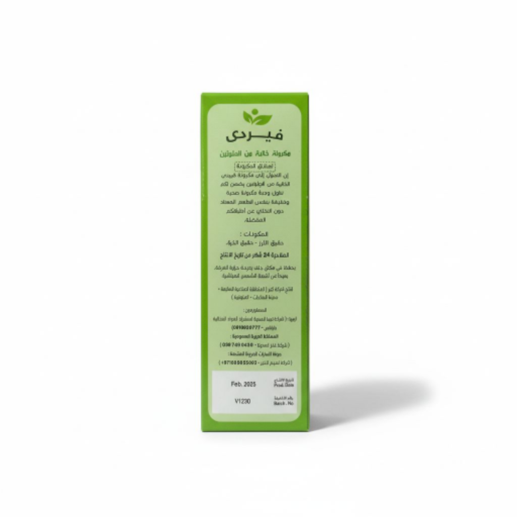 استمتع بمكرونة صحّية ولذيذة مع مكرونة الذرة الخالية من الجلوتين من فيردي — الخيار المثالي لكل من يبحث عن جودة عالية ومذاق رائع بدون أي تنازلات. مصنوعة 100% من الذرة الطبيعية، لضمان قوام ممتاز وطعم يشبه المكرونة التقليدية تمامًا… بدون جلوتين، بدون قلق، وبدون أي إضافات غير مرغوبة.